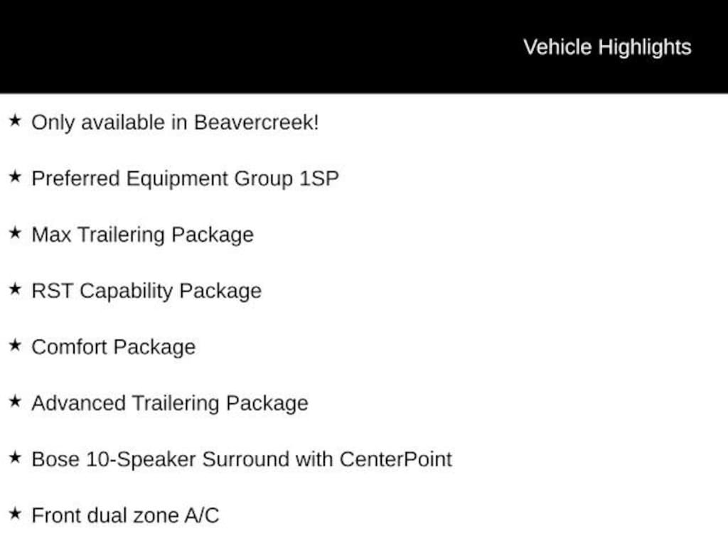 Only available in Beavercreek!, 4WD, 2-Speed Active Electronic AutoTrac Transfer Case, 2-Way Driver Power Lumbar Seat Adjuster, 2-Way Front Passenger Power Lumbar Seat Adjuster, 8-Way Power Driver Seat Adjuster, 8-Way Power Front Passenger Seat Adjuster, Advanced Trailering Package, Air Ride Adaptive Suspension, Blind Zone Steering Assist with Trailering, Bose 10-Speaker Surround with CenterPoint, Comfort Package, Dual-Pane Power Panoramic Sunroof, Front dual zone A/C, Heated 2nd Row Outboard Seats, Heated Driver and Front Passenger Seats, Heated Steering Wheel, Hill Descent Control, Hitch View with Pan/Zoom Image Adjustment, Integrated Trailer Brake Controller, Interior Camera, Magnetic Ride Control Suspension, Max Trailering Package, Memory Settings, Power Release 2nd Row Bucket Seats, Power-Sliding Center Floor Console, Preferred Equipment Group 1SP, Rear Power Liftgate, RST Capability Package, Smart Trailer Integration Indicator, Universal Home Remote, Wheels: 24 x 9.5 Machined.